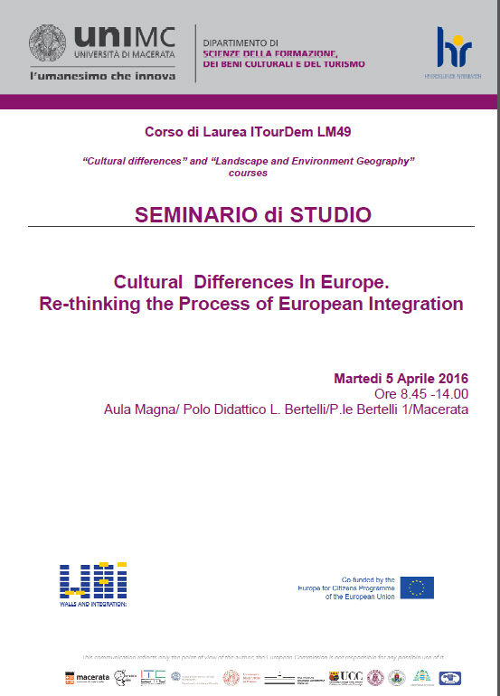 "Cultural Differences In Europe. Re-thinking the Process of European Integration" organizzato nell'ambito del progetto europeo “Walls and Integration: images of Europe building - WAI”.