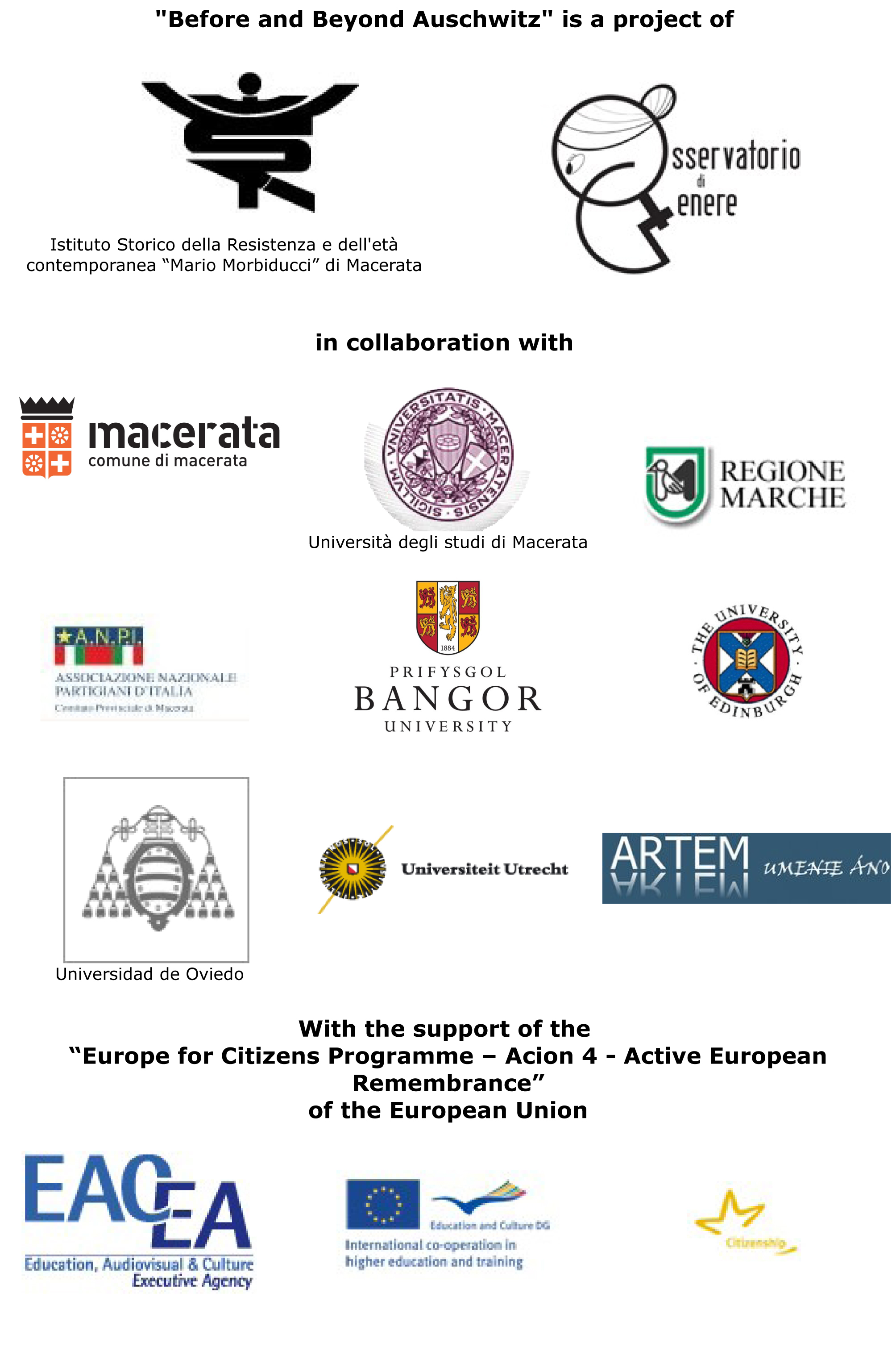 L'Istituto Storico della Resistenza e dell'Età Contemporanea "Mario Morbiducci" di Macerata all'interno del progetto Before and Beyond Auschwitz. Programma "Europe for Citizens. Programme Action 4 - Active European Remembrance"